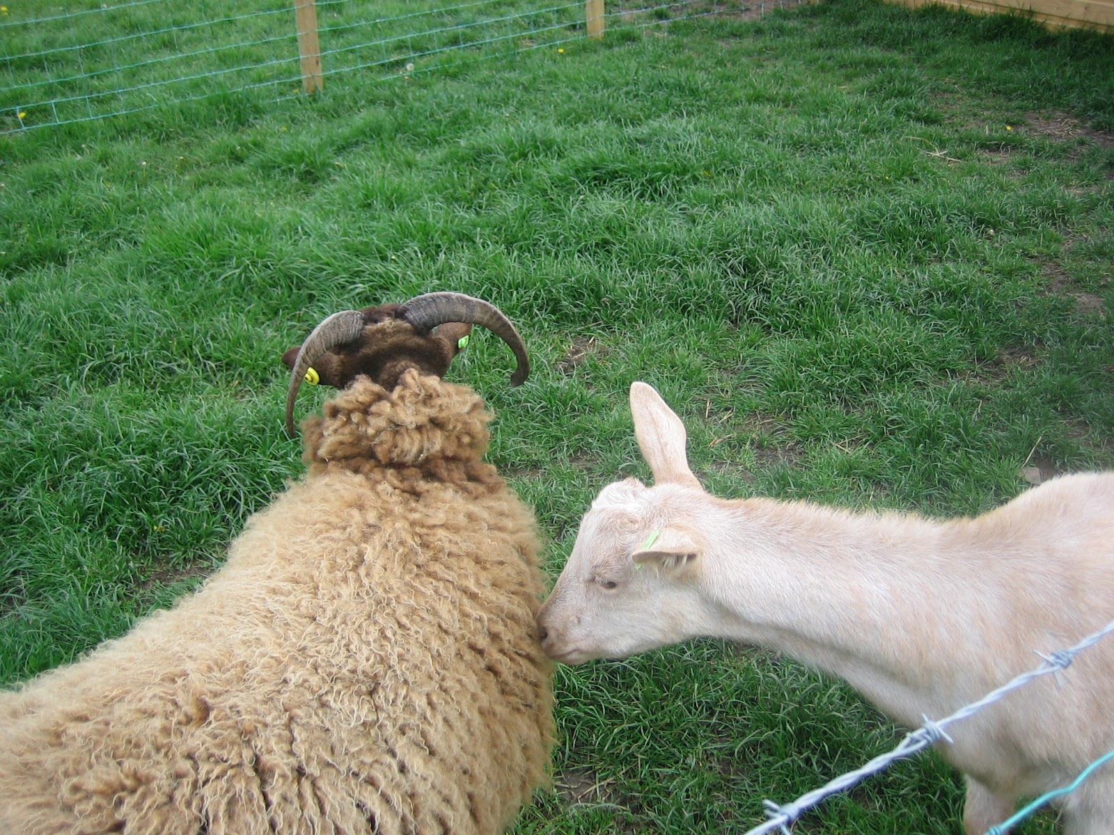 Back home she went while we went off to Tam O'Shanter to collect the cousins (as yet unnamed). This afternoon I spent a couple of hours watching her as she tried to settle in. The cousins were quite curious and were happy to have a chat to her but she just ran off. They just carried on grazing away happy in each other's company. Strangely enough Polly seemed happier with the goats and they seemed to like her too. Button in particular was nuzzling her and she wasn't at all bothered.